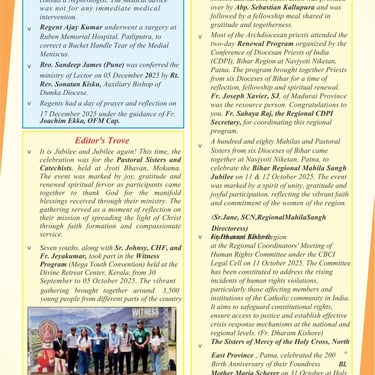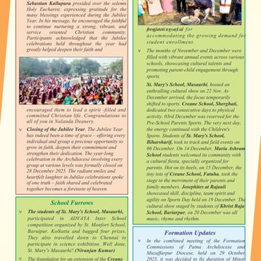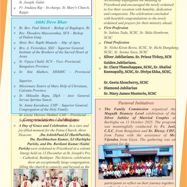 "Welcome to the digital home of the Archdiocese of Patna. It is with great joy that I invite you to explore the life and mission of our vibrant faith community. May this website be a source of information, inspiration, and connection for all."